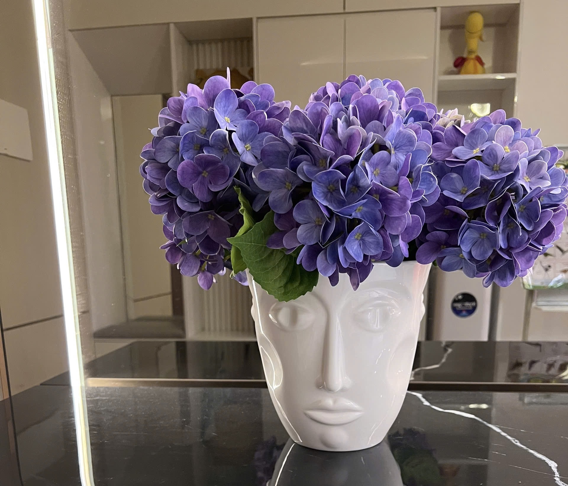 BÌNH HOA MẶT NGƯỜI KÈM HOA CẨM TÚ CẦU