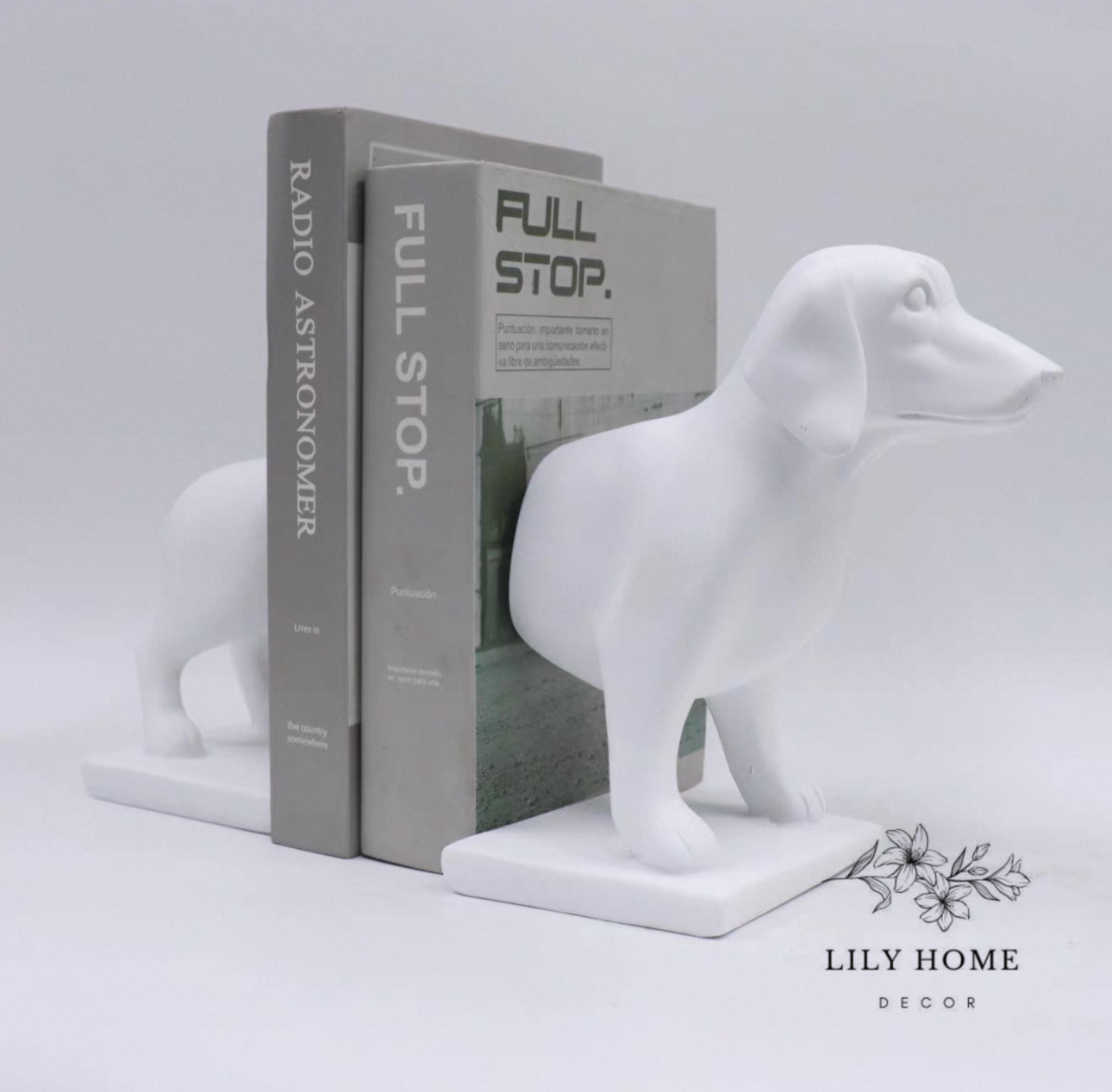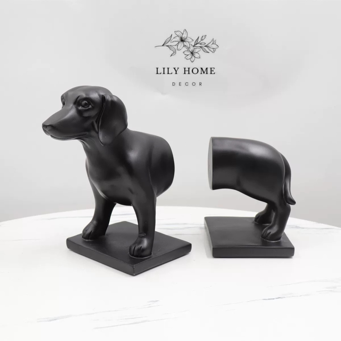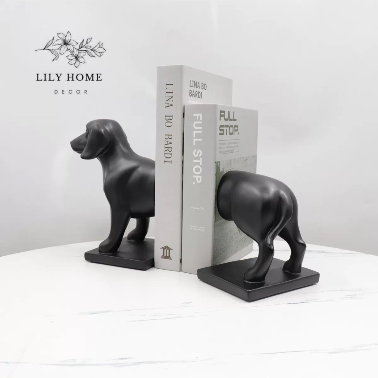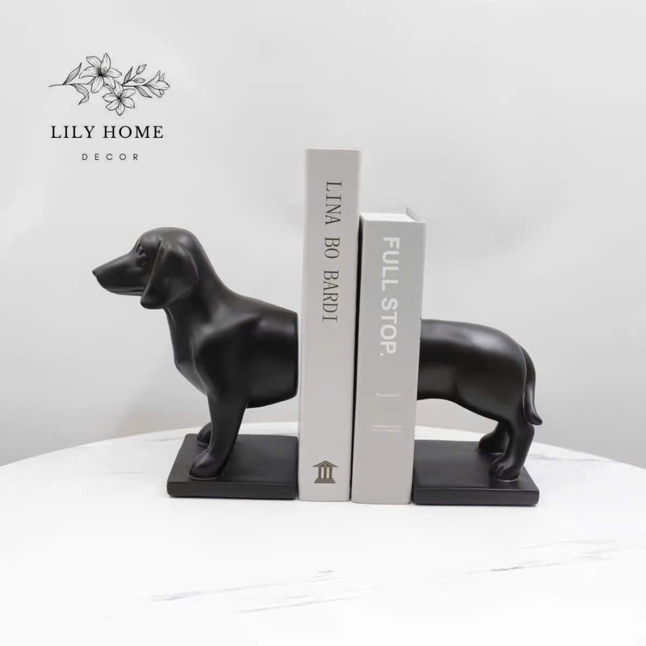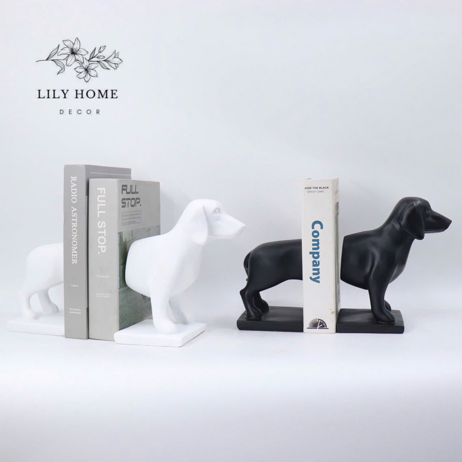 Chặn sách được tạo hình thành chú chó đáng yêu, chia làm hai phần (đầu và đuôi), khi đặt hai đầu sách vào giữa sẽ tạo cảm giác như chú chó đang “đứng gác” trên kệ. Làm từ nhựa resin chắc chắn, bề mặt mịn, dễ lau chùi, vừa nhẹ vừa bền. Có phiên bản trắng thanh lịch và đen sang trọng, dễ dàng kết hợp với nhiều phong cách không gian khác nhau. Sản phẩm giữ cho sách vở, tạp chí luôn ngay ngắn, đồng thời là món đồ trang trí sáng tạo cho phòng khách, phòng làm việc hay thư viện tại gia.