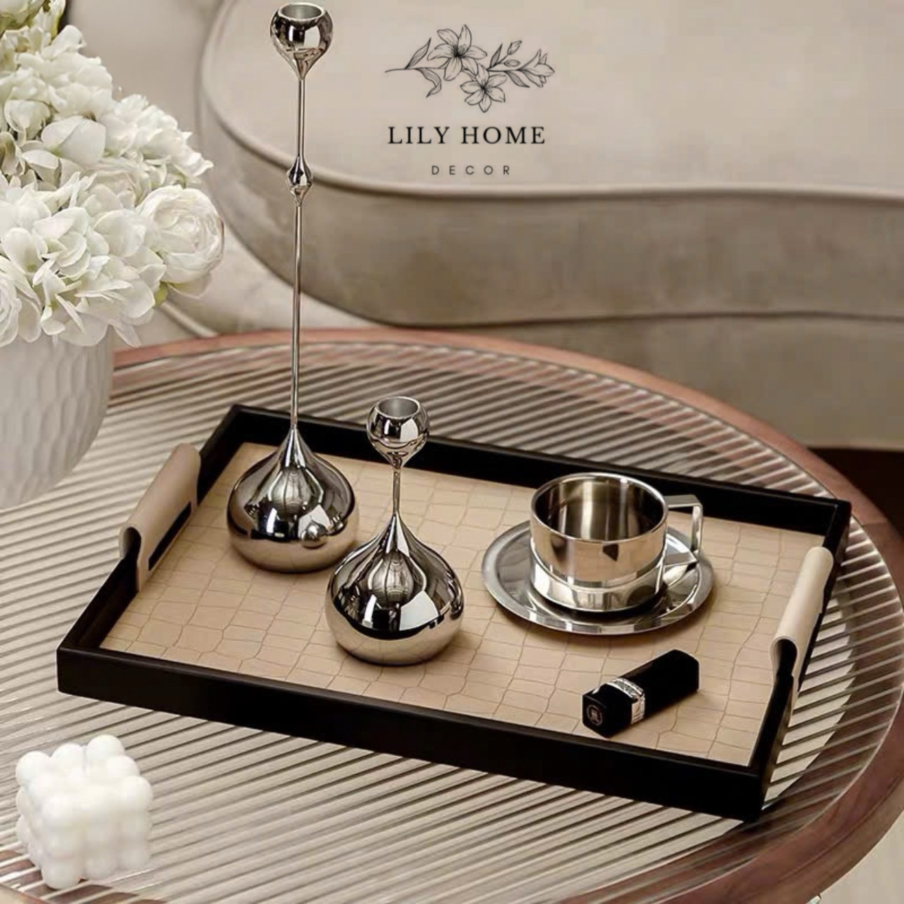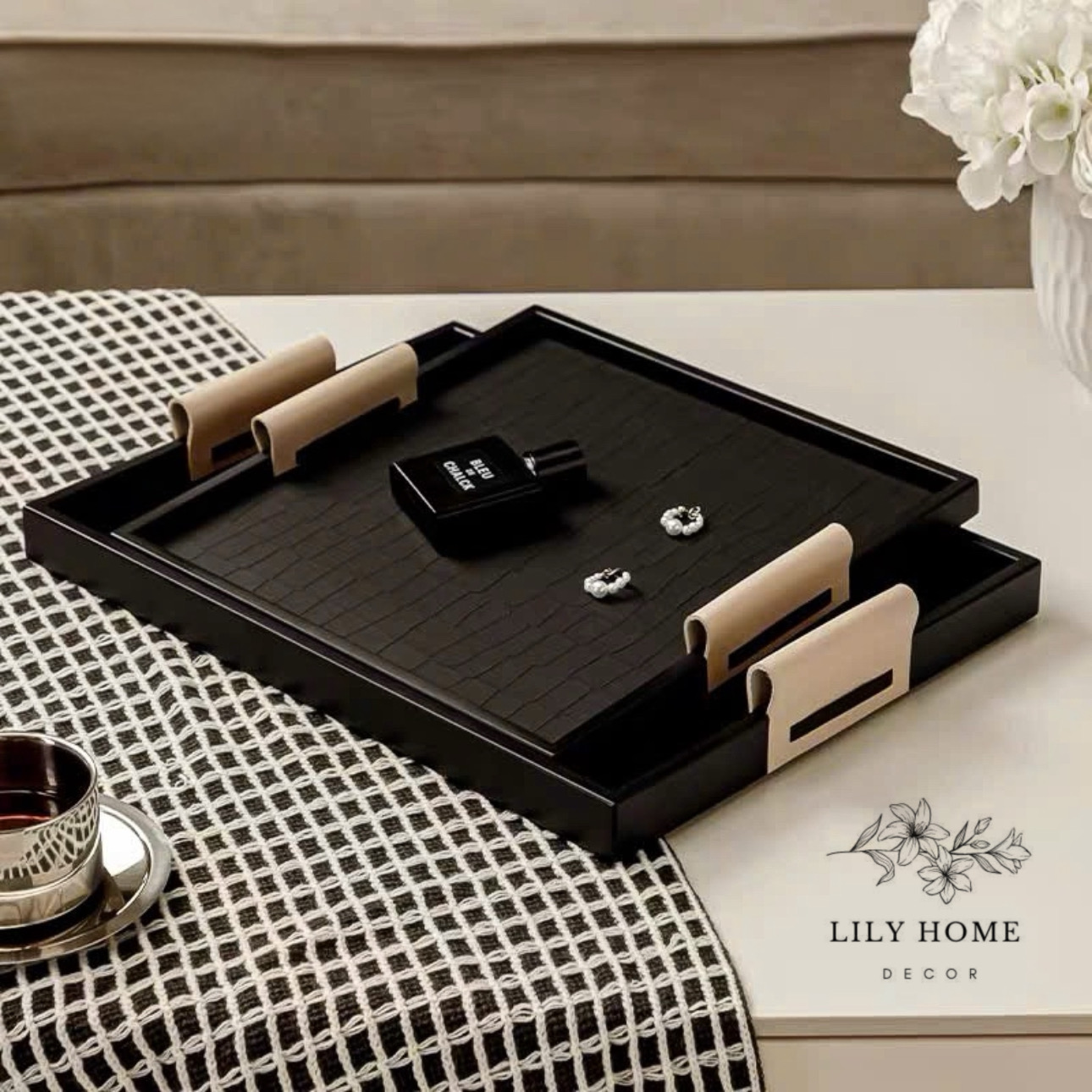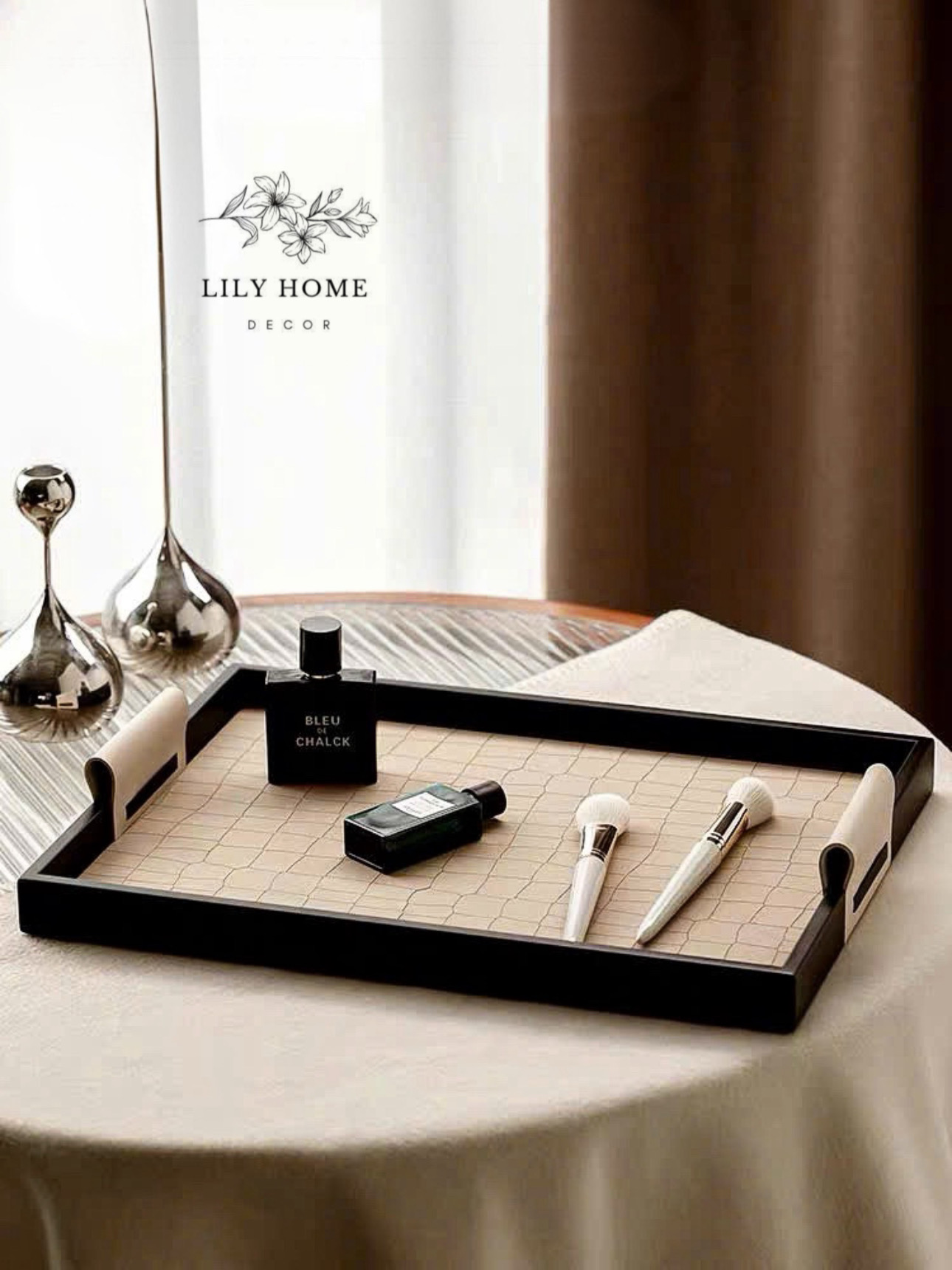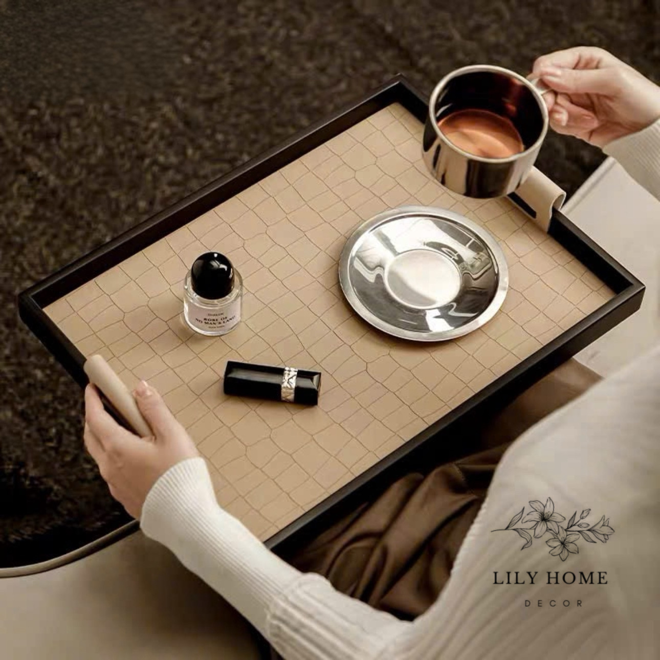 Khay da cao cấp mang đậm phong cách nhẹ nhàng – tối giản – sang trọng, là món phụ kiện trang trí hoàn hảo cho không gian sống hiện đại. Sản phẩm được chế tác từ da cao cấp, bề mặt dập vân tinh xảo tạo hiệu ứng thị giác bắt mắt và sang trọng. Khung viền cứng cáp kết hợp cùng tay cầm bo tròn chắc chắn giúp dễ dàng di chuyển, đồng thời vẫn giữ được vẻ thanh lịch trong từng đường nét.