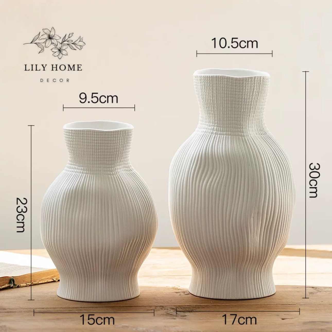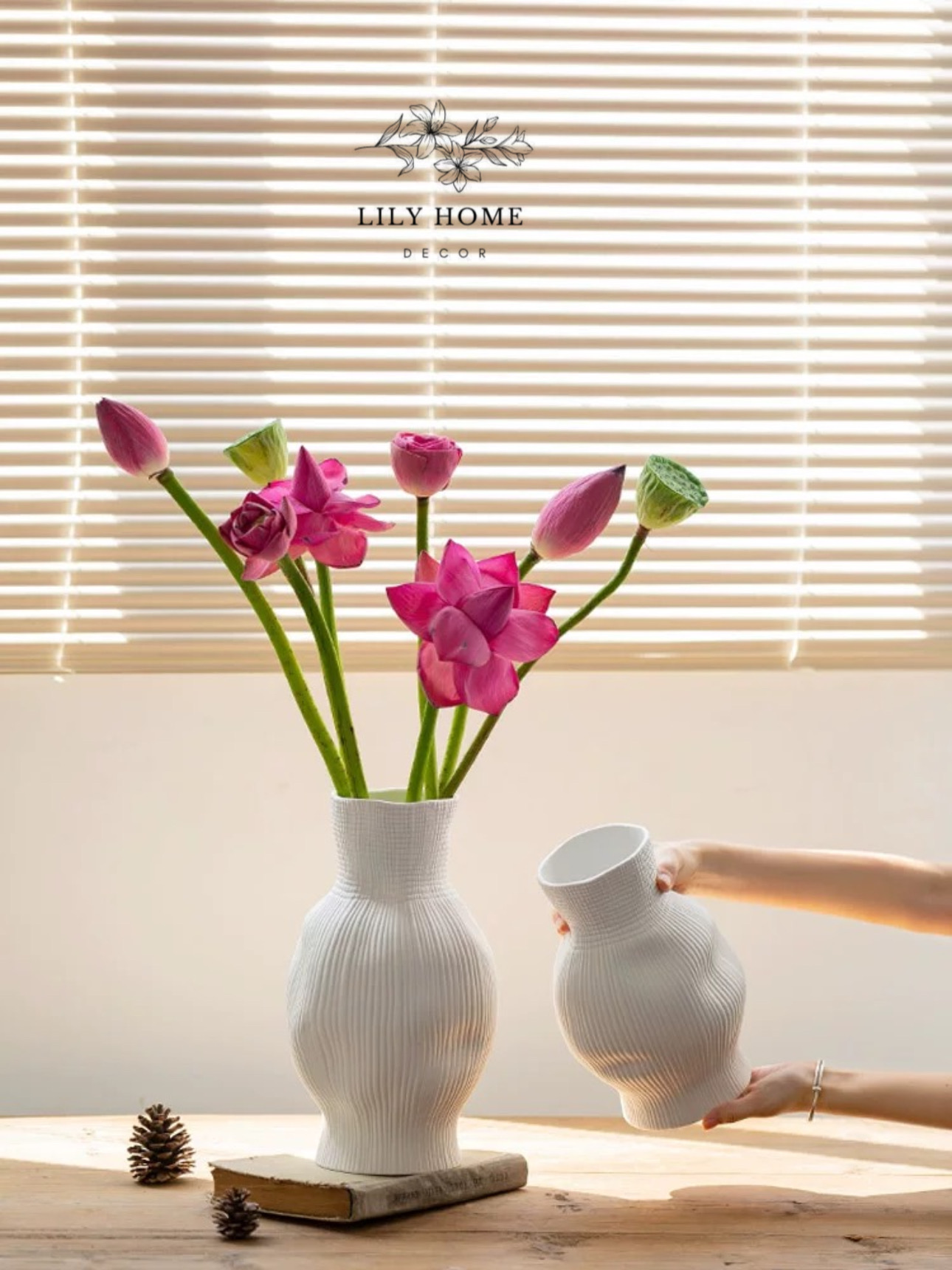 Với tông màu trắng cổ điển, dễ dàng tạo điểm nhấn nổi bật trong nhiều không gian nội thất khác nhau. Thiết kế nhẹ nhàng, đơn giản nhưng mang lại cảm giác cao cấp và tinh tế. Thích hợp cắm hoa tươi, hoa lụa, thủy sinh hoặc sử dụng như một vật decor độc lập.